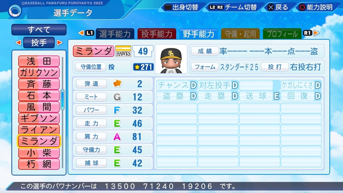 作成した選手の一覧は、以下の記事で誘導しております。