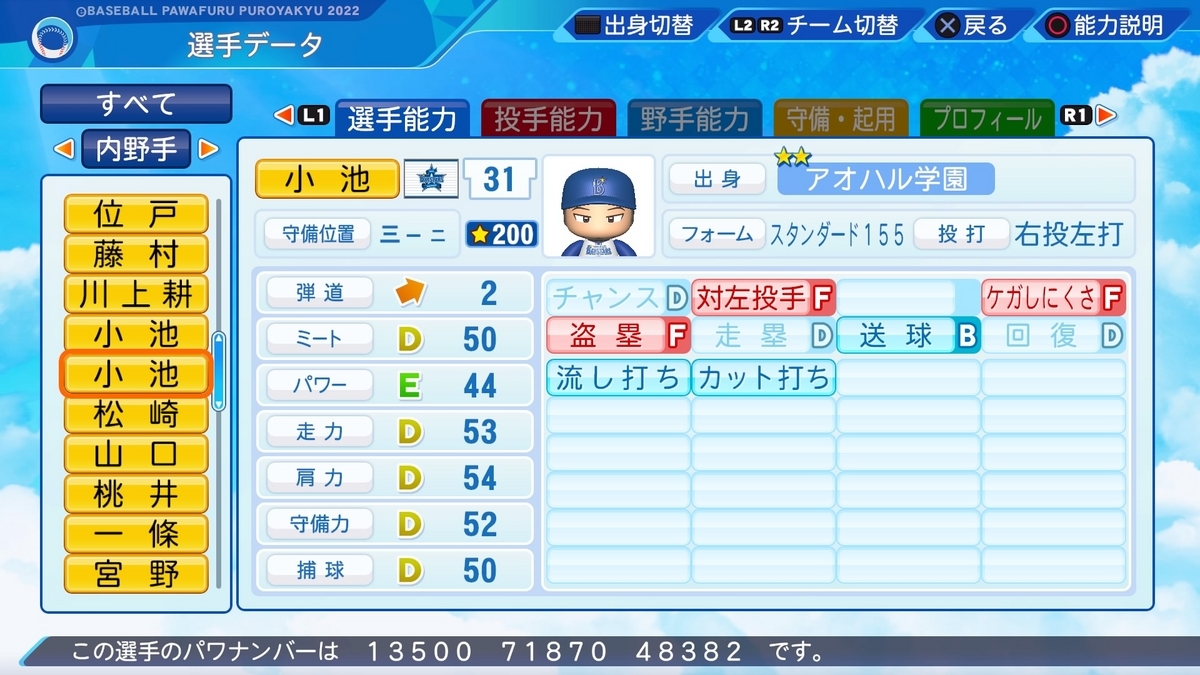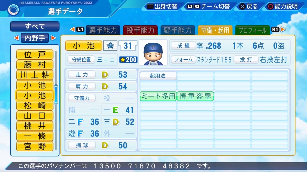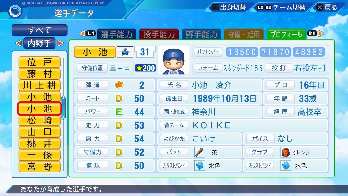 作成した選手の一覧は、以下の記事で誘導しております。