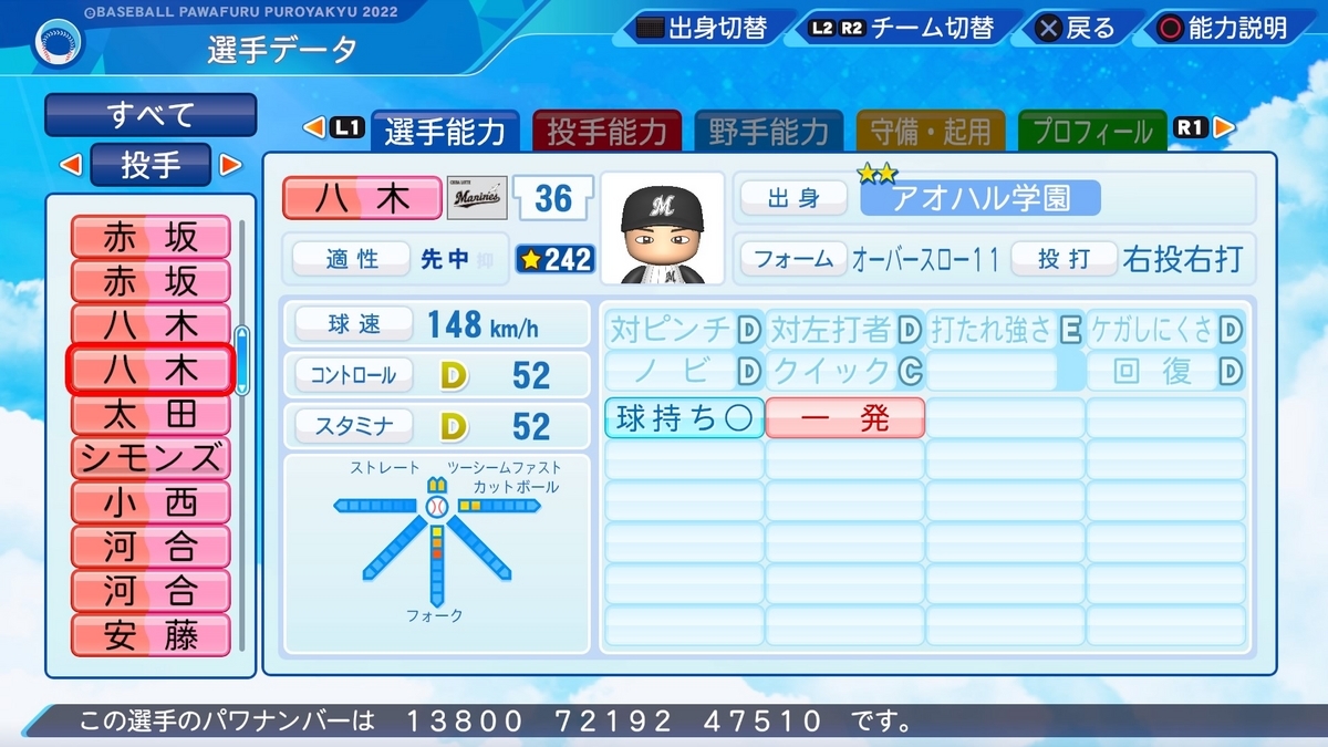 右腕ならもう少し球速が欲しい、と思わせる能力。まとまってはいるけど、でも突き抜けたモノがないから一軍ではどうだろう…………みたいな。