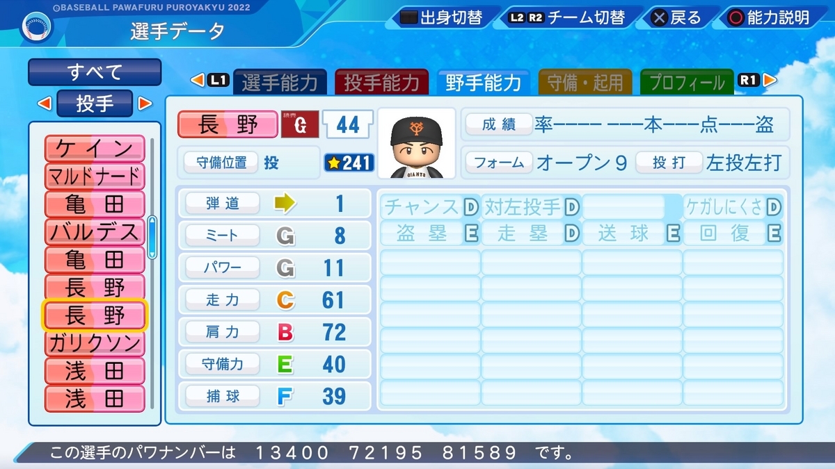 昨季から比較して大分能力が伸びましたが、これは一軍である程度機会を得たことが大きいですね。まだ全然未完成な投手なので、これからの成長が楽しみ。