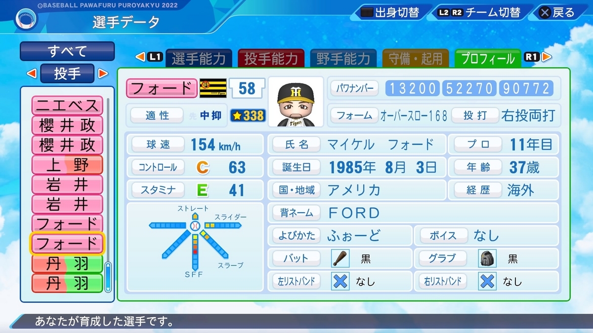 怪我の影響で能力は落ちていますが、特殊能力が強力なので1~2年くらいなら保つとは思います。さすがに37歳なので、オーペナを進めるとガンガン能力が落ちていくと思いますが…………。