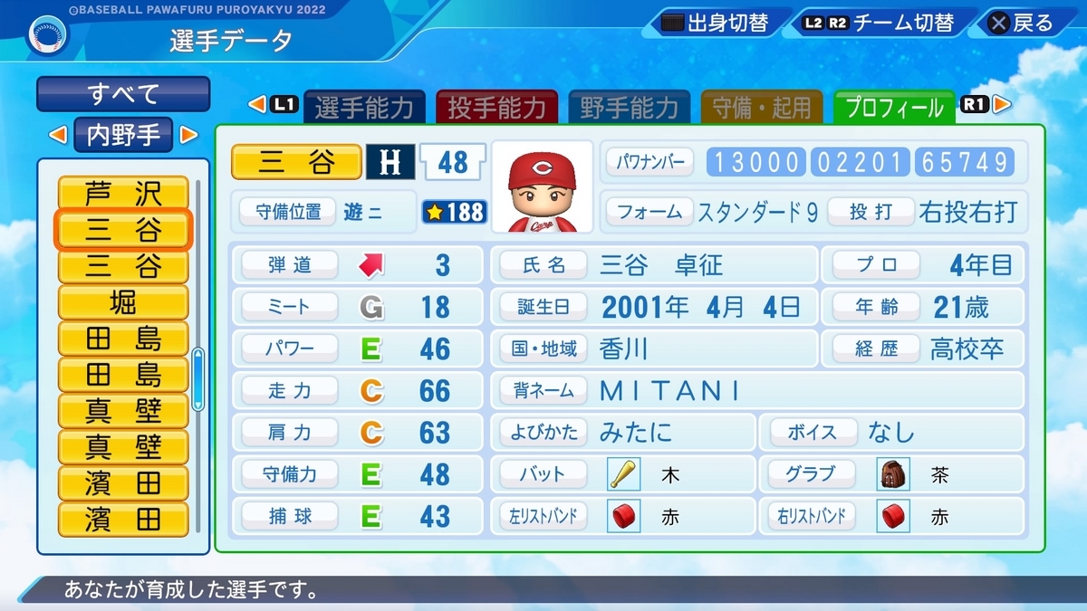 2022年度成績(二軍):26試合 打率.203(69-14) 2本塁打6打点 1盗塁 OPS.582