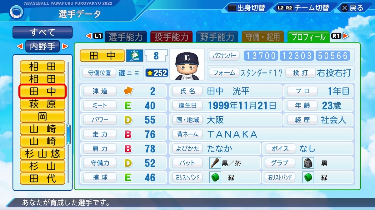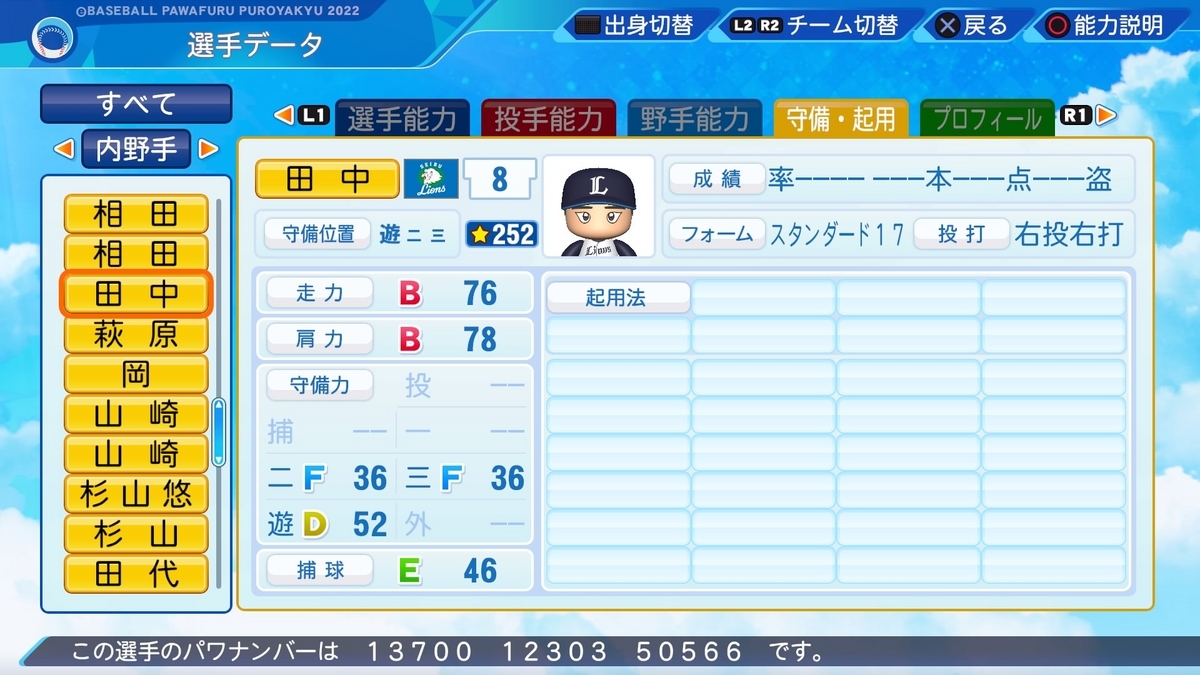 作成した選手の一覧は、以下の記事で誘導しております。