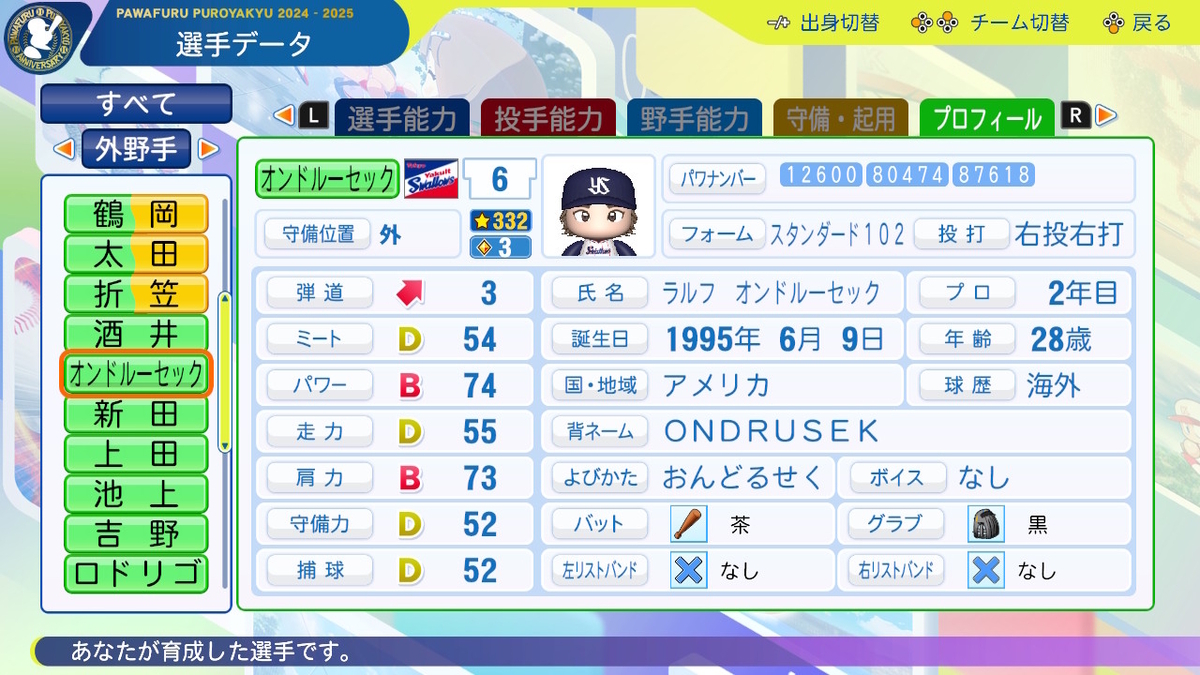 作成した選手の一覧は、以下のリンクに掲載しております。