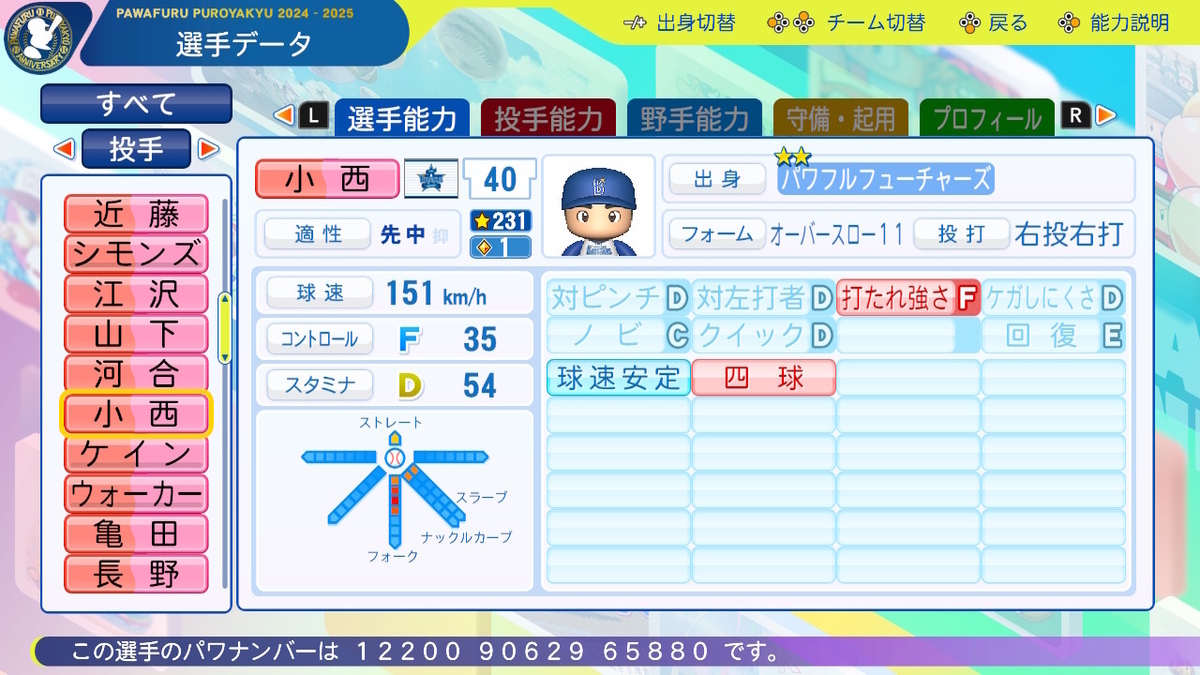 作成した選手の一覧は、以下のリンクに掲載しております。