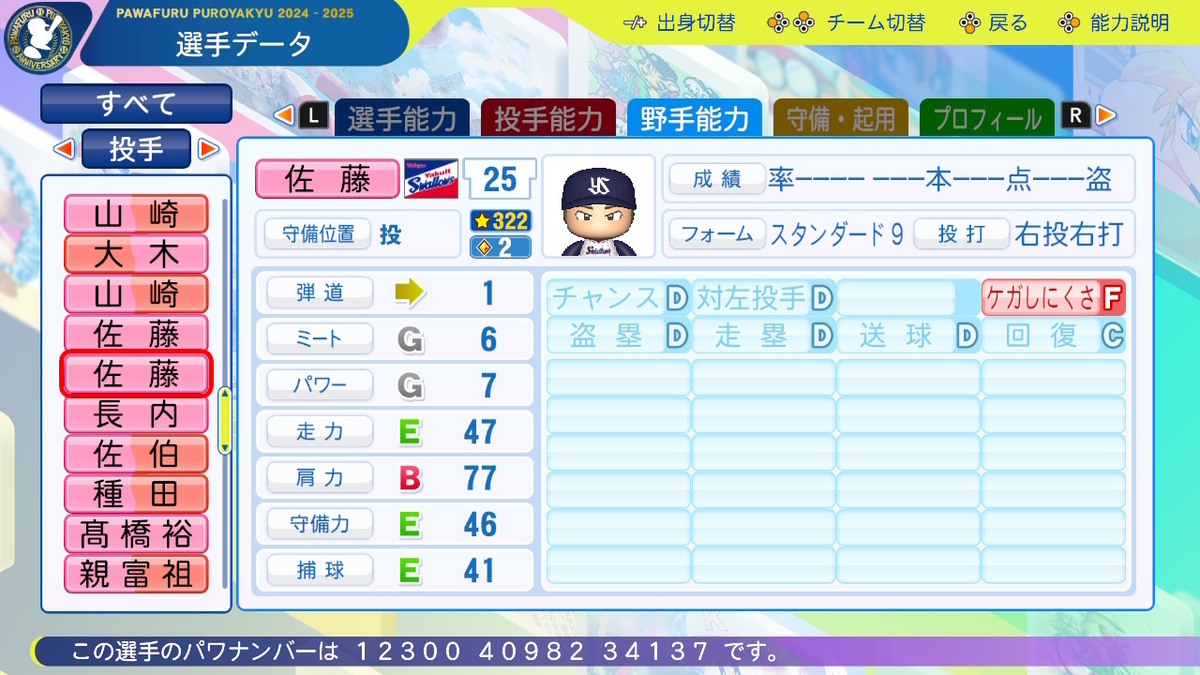作成した選手の一覧は、以下のリンクに掲載しております。