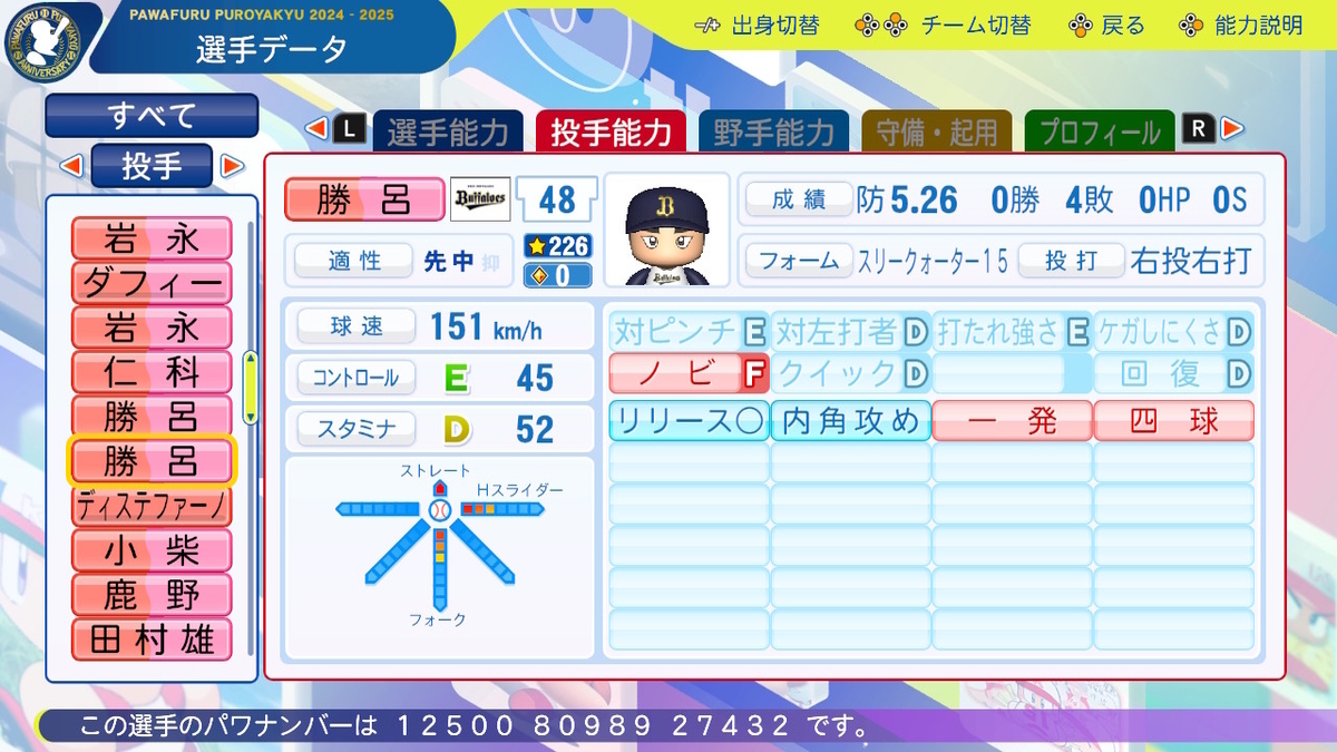 2024年度成績:9登板 0勝4敗0セーブ0ホールド 25.2投球回19奪三振 防御率5.26