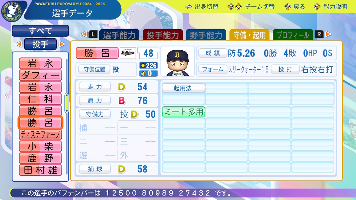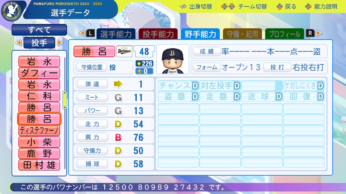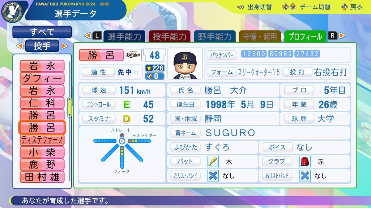 作成した選手の一覧は、以下のリンクに掲載しております。