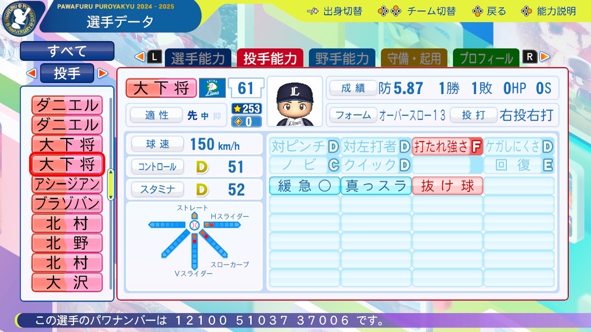 作成した選手の一覧は、以下のリンクに掲載しております。