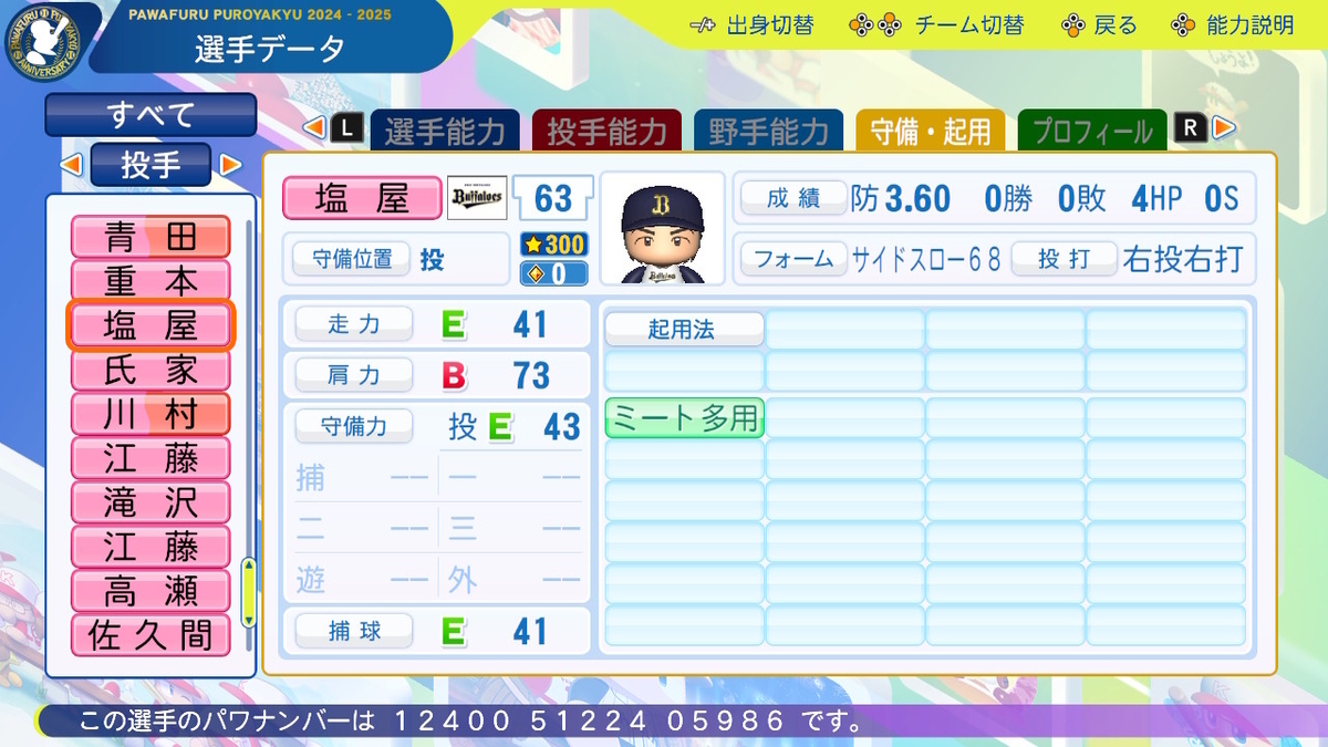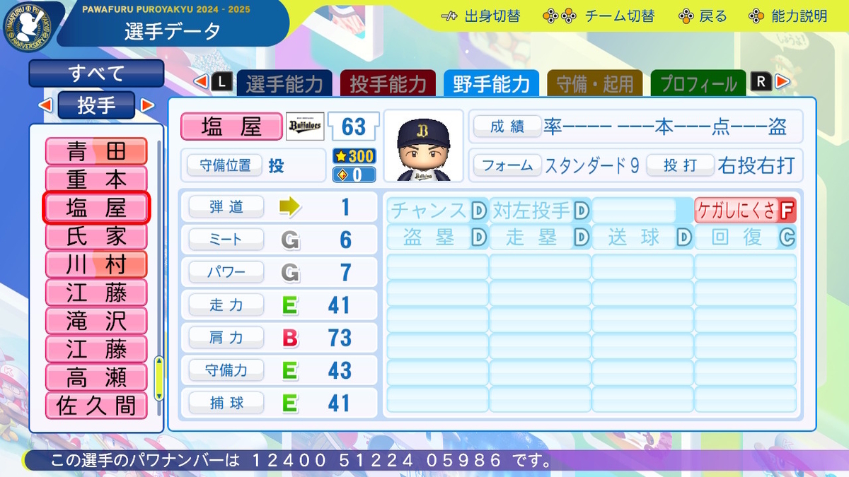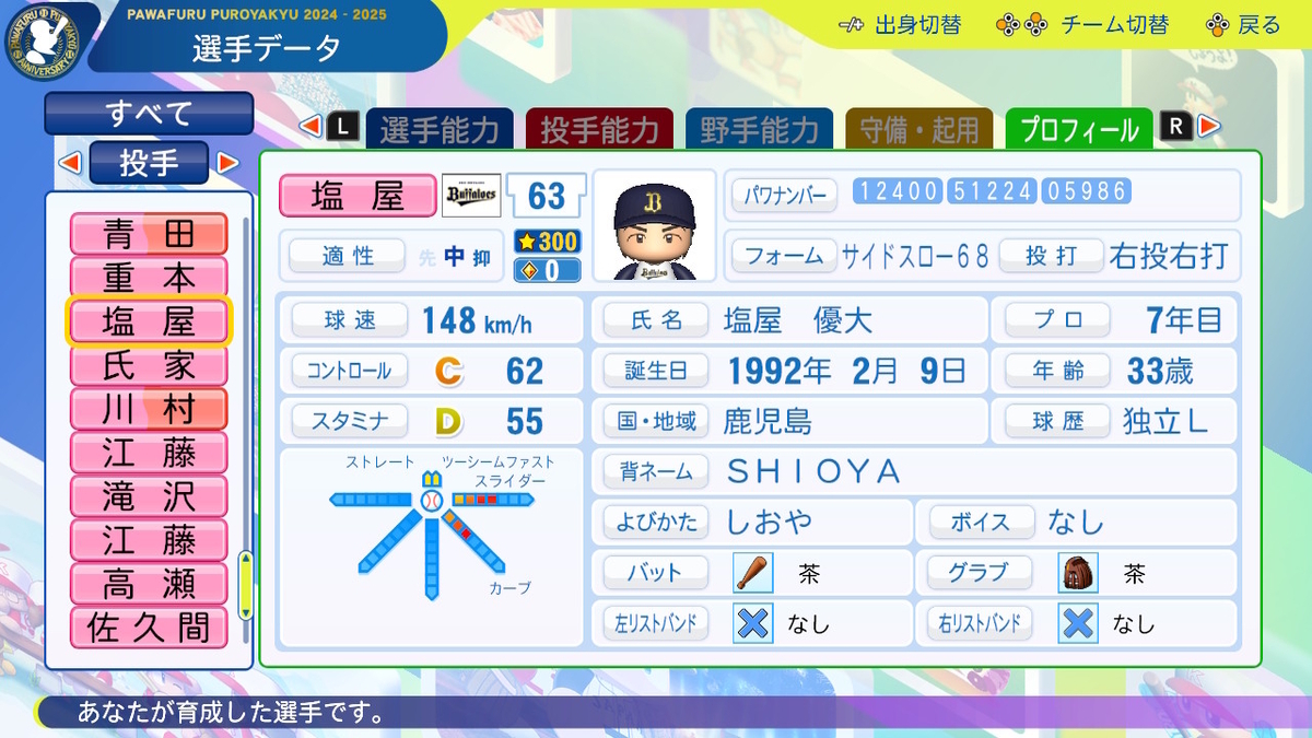 作成した選手の一覧は、以下のリンクに掲載しております。